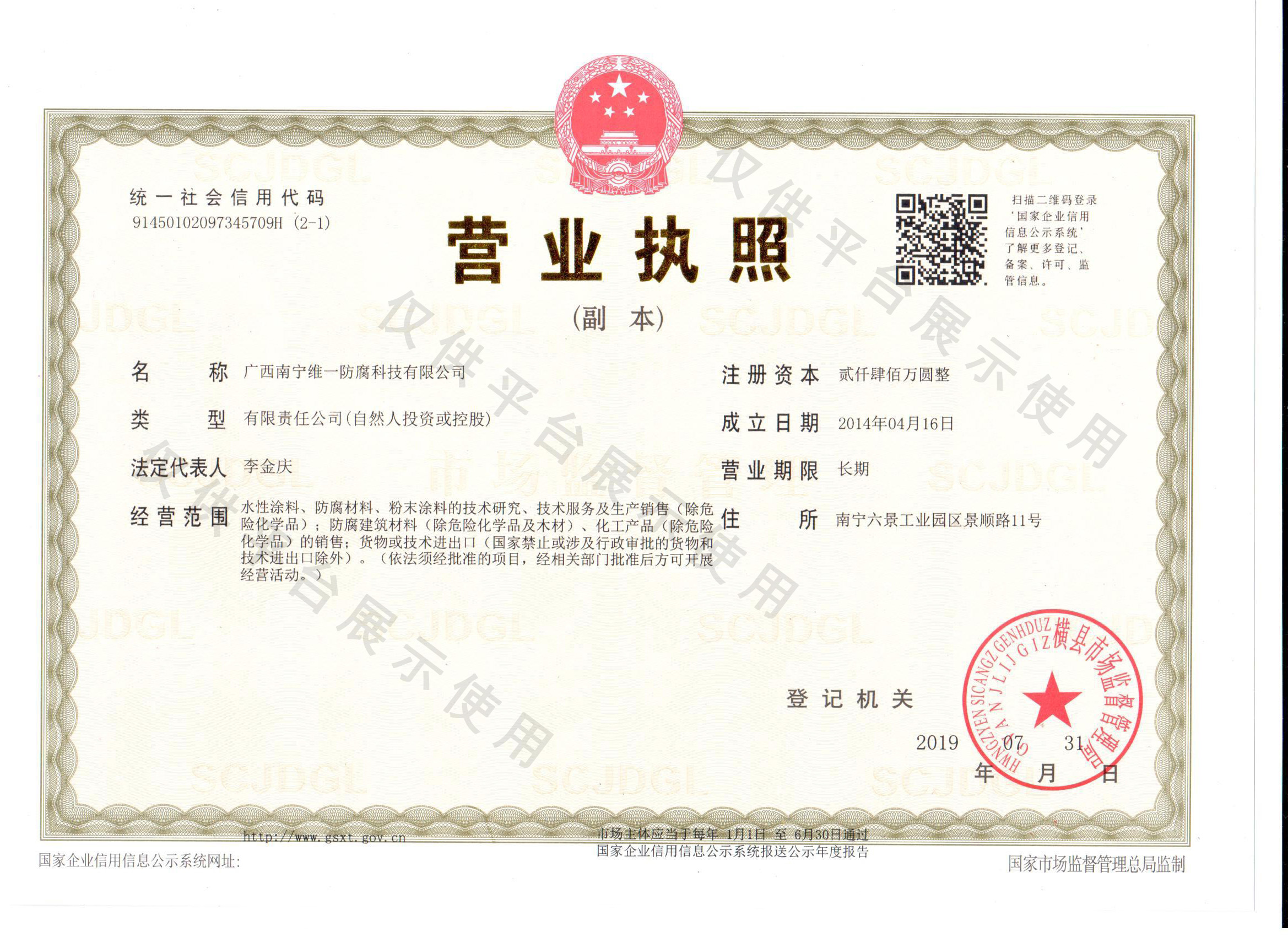 公司名稱: 廣西南寧維一防腐科技有限公司